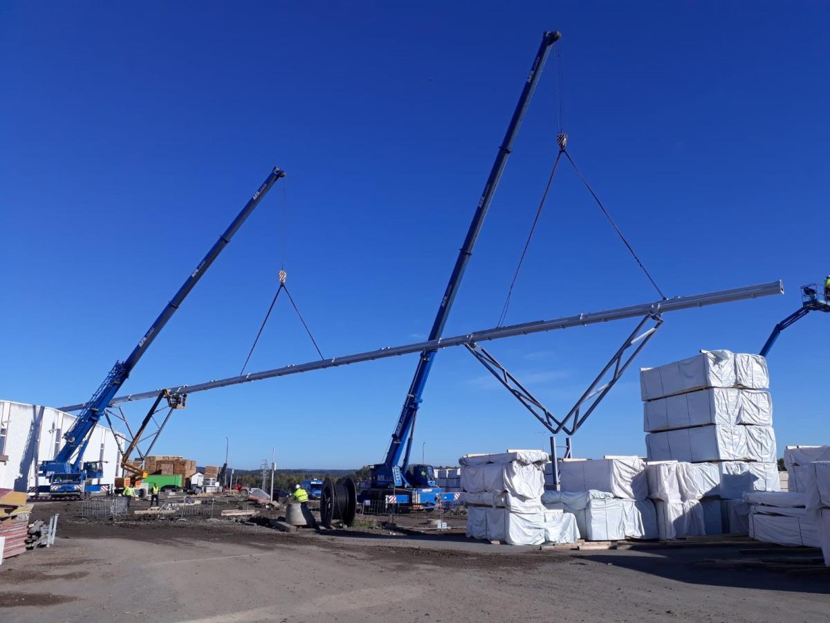 „Für die Hebearbeiten der Vecobelt-Teilstücke sollten mobile 100-Tonnen-Autokräne zum Einsatz kommen“, berichtet Krieger. „Diese Einsätze mussten wir mit dem Lieferanten planen und koordinieren.“ Doch irgendwas stimmte nicht. Krieger erkannte recht schnell: Die angelieferten Mobilkräne waren viel größer und vor allem teurer als die, die er bestellt hatte. Das wiederum führte mit dem Kranlieferanten zu „freundlichen“ Gesprächen. Diese endeten damit, dass ein anderes Kranunternehmen mit seriösen Preisen und geeigneten Mobilkränen die Arbeiten ausführte. Dies war allerdings nicht unbedingt förderlich für den eng gesteckten Terminplan.
