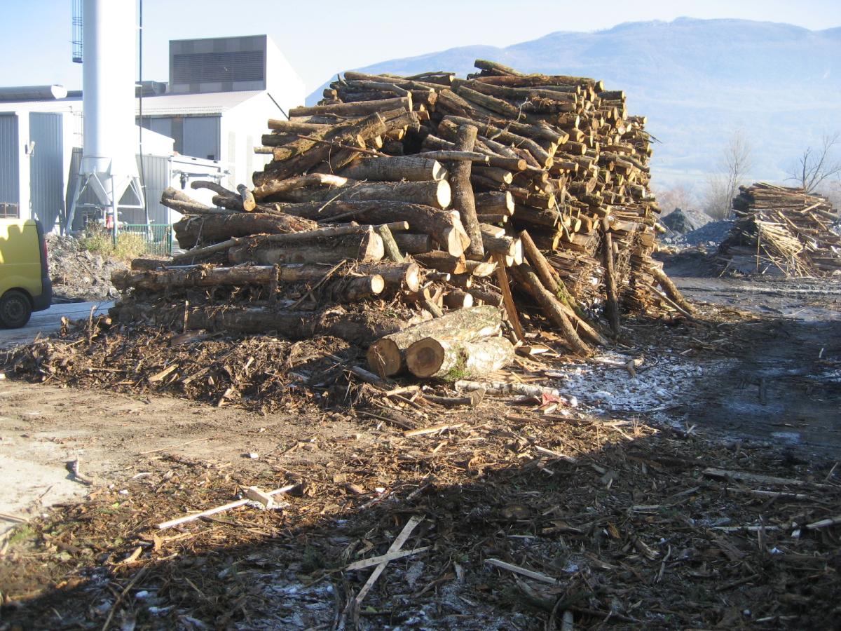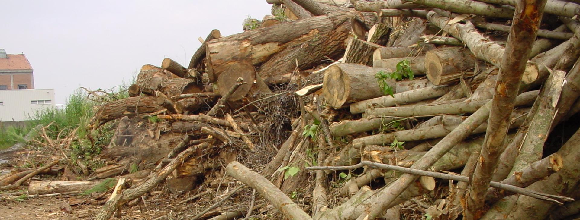 Rundes und entastetes, nicht bearbeitetes BaumholzNicht sägefähiges oder direkt verwertbares Rundholz wird in der Regel zu Hackschnitzeln verarbeitet und dann als Brennstoff für Holzfeuerungsanlagen, als Rohstoff für die Plattenindustrie, Pellet-Herstellung oder die Zellstoffproduktion verwendet.