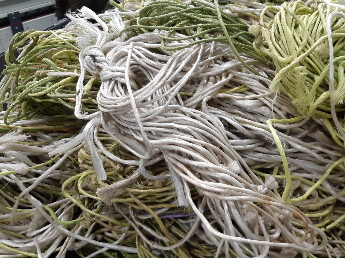 Garne und Schnüre, die oft in der Landwirtschaft und im Gartenbau eingesetzt werden, bestehen in der Regel aus zusammengedrehten PolypropylenfasernDie besondere Herausforderung in der mechanischen Aufbereitung von gebrauchten Schnüren und Garnen besteht nicht nur darin, dass sie aus extrem reißfestem, dünnem und zum Teil zähelastischem Material sind. Es kommt hinzu, dass die Schnüre in sich verwickelt und durch Störstoffe wie Steine, Holzreste und anderem anhaftenden Schmutzteilen belastet sind.