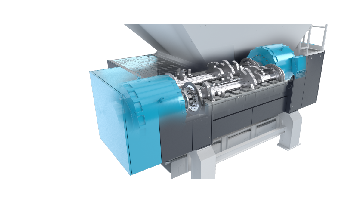 Für die Rotoren setzt Vecoplan auf die dynamischen, anlauf- und drehmomentstarken HiTorc-Antriebe. Diese haben keine mechanischen Elemente wie Riementriebe, Kupplungen oder Hydraulikaggregate. Damit fallen im Vergleich zu hydraulischen Antrieben kaum Wartungsarbeiten an. Dazu kommt: Weil weniger Masse bewegt werden muss, erreichen sie einen günstigen Wirkungsgrad. Der Betreiber spart deutlich Energiekosten. Die Antriebe mit einer Leistung von 2 x 138 Kilowatt sind absolut unempfindlich gegenüber Störstoffen. Sie arbeiten zudem sehr dynamisch und verbessern damit das Anlauf- und Reversierverhalten. So eignet sich der VRZ auch für schwierige, zähe Materialien.