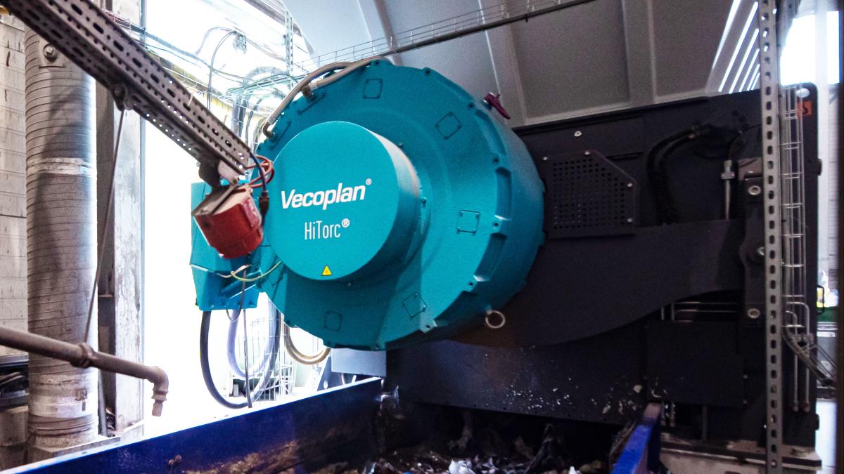 Je nach Anwendung bietet Vecoplan den HiTorc in verschiedenen Leistungsklassen an. „Die passende Kombination aus Frequenzumrichter und Direktantriebsmotor hängt von Leistung, Drehmoment und Drehzahl ab, die wir passend zur Anwendung einstellen“, erläutert Kessler. Beim Sackaufreißer etwa dreht die Maschine sehr langsam, weil sie vor allem Müllsäcke öffnen muss. Verlangt ist ein relativ großes Drehmoment. Nachzerkleinerer drehen in der Regel schneller, beim VEZ 3200 TT beispielsweise kommen zwei Synchronantriebe mit einem Spitzendrehmoment von 110.000 Newtonmeter zum Einsatz. Über zwei Frequenzumrichter werden die beiden Antriebe im optimierten Master/Slave-Betrieb in einer erweiterten Vektorregelung betrieben. Die im Frequenzumrichter integrierte Regelung stellt sicher, dass zu jeder Zeit und in jedem Betriebszustand das optimale Drehmoment an der Rotorwelle zur Verfügung steht. Die drehzahl- und drehmomentabhängige Regelung ermöglicht den wirtschaftlichen Betrieb. Drehmomente stehen dann zur Verfügung, wenn sie benötigt werden. Gleichzeitig wird die Leistung reduziert, wenn sie nicht für den Zerkleinerungsprozess erforderlich ist.