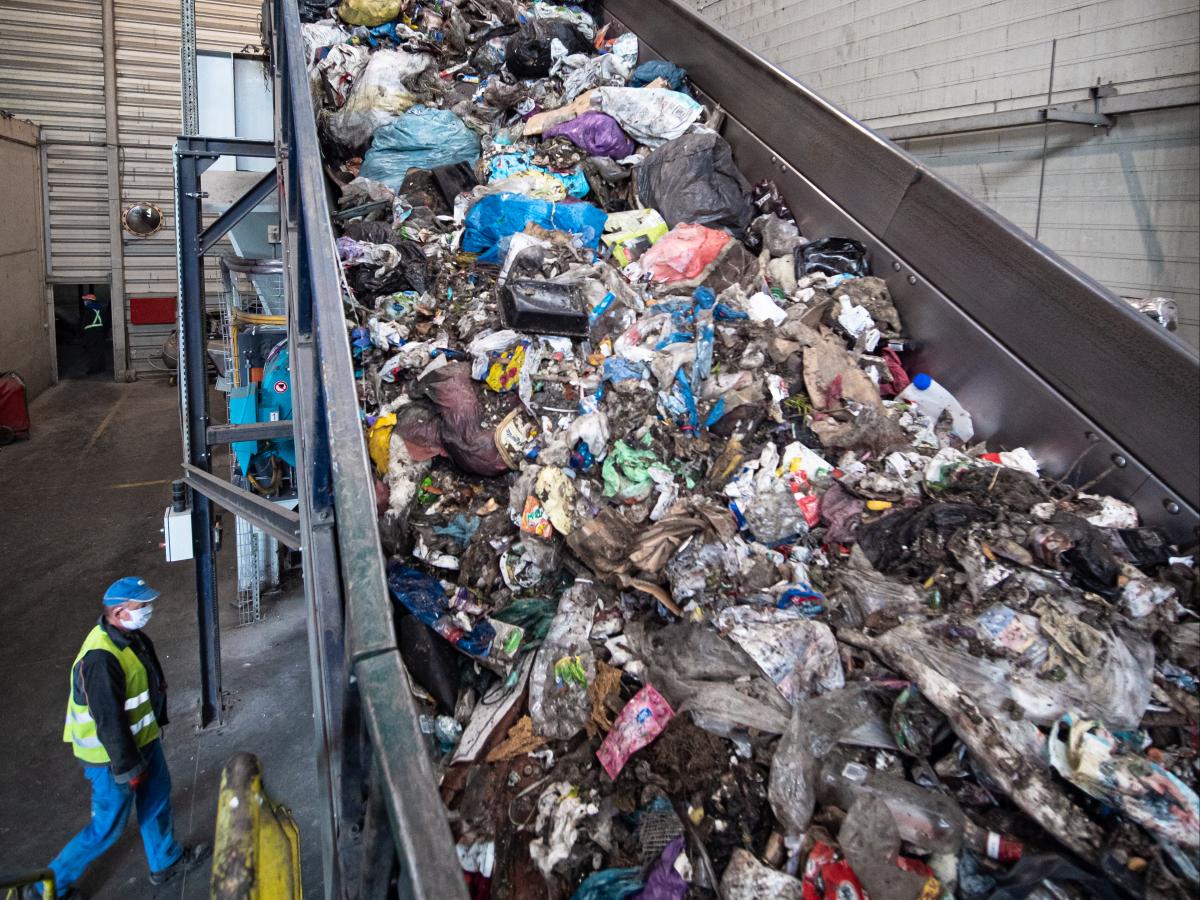 Die Abfälle werden nach der Vorzerkleinerung weiter aufbereitet. Ein Magnetabscheider etwa entfernt zuverlässig alle eisenhaltigen Stoffe, ein Windsichter trennt anschließend den Materialstrom in Schwer- und Leichtfraktionen.