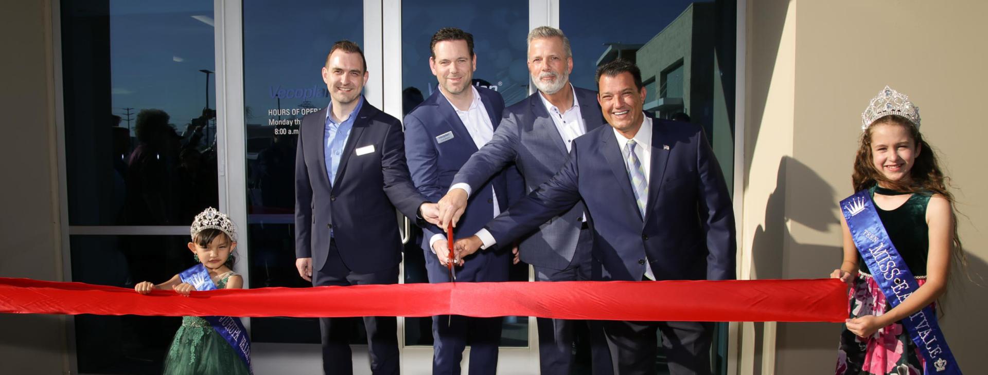 Die Vecoplan LLC hat im kalifornischen Eastvale eine weitere Niederlassung eröffnet: (v. l.) Michael Lambert (CFO, Vecoplan Group), Frank Boerjan (CEO, Vecoplan LLC), Werner Berens (CEO, Vecoplan Group) und der Bürgermeister von Eastvale.