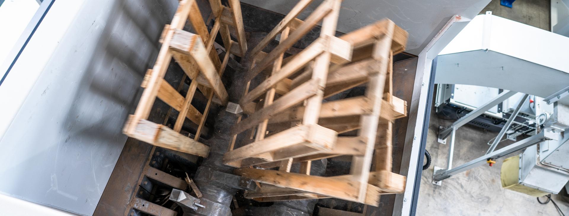 „Die Anfragen kamen vor allem aus den USA“, berichtet Dirk Müller, Leiter des Geschäftsbereichs Wood | Biomass bei Vecoplan. „Dort setzen die Material- und Verteilzentren sowie die großen Baumarktketten häufig Einwegpaletten ein.“ Diese sperrigen Holzbauteile müssen im Dauerbetrieb zuverlässig geschreddert werden. Möglich ist dies in der Regel nur mit großen Zerkleinerern, die auch eine entsprechende Aufstellfläche erfordern. Dazu kommt: Werden Bauteile wie Paletten direkt der Zerkleinerung zugeführt, ist die Durchsatzleistung aufgrund ihrer luftigen Konstruktion relativ gering – die Zerkleinerung dauert.