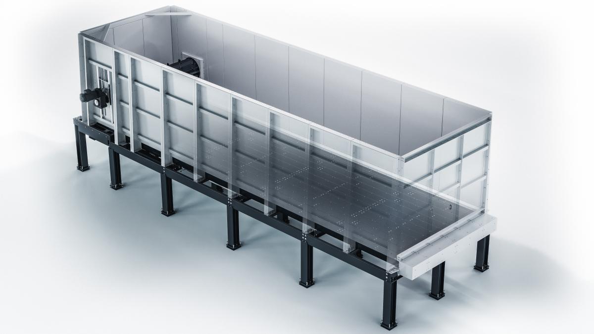 Um Material annehmen zu können und den nachfolgenden Fördersystemen sicher zuzuführen, hat Vecoplan in vergangenen Projekten aus bestehenden Komponenten Lkw- Annahmestationen konstruiert. Mit dem VTU wurde nun eine standardisierte Lösung im Programm aufgenommen. Dieser Vecoplan Truck Unloader lässt sich auf Prozesse, Förderwege und notwendige Leistungen sowie Gegebenheiten anpassen. Erhältlich ist die Weiterentwicklung in zwei Varianten: Der VTU-S kann verschiedene Schüttgüter aus dem Walking-Floor-Auflieger eines Lkw für das nachgeschaltete Förder- und Lagersystem annehmen und weitertransportieren. Beim VTU-B wird das Material per Walking-Floor oder Kippmechanismus eines Lkw in einen Bunker mit Kratzböden verbracht. „Beide Truck Unloader-Varianten eignen sich ideal, um etwa Ersatzbrennstoffe, Biomasse, Altholz und Hackschnitzel zu transportieren“, erläutert Hamer. „Die Variante K hat zudem ein Fassungsvermögen von bis zu 100 Kubikmeter Material und kann somit als Zwischenspeicher fungieren, aus dem sehr schnell ausgetragen werden kann.“ Für die Betreiber ist das ein deutlicher Zeitgewinn bei der Lkw-Entladung.