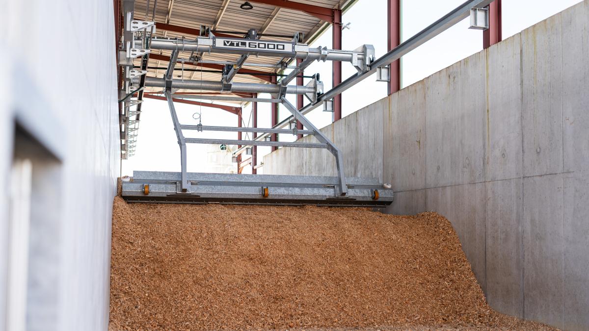 Die vollautomatische Schüttgutlagerlösung VTL Toploader eignet sich für das Handling von Hackschnitzeln, Sägemehl und Rinde.