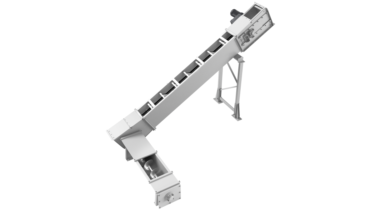 - Kompaktes System, Schnecken- und Kettenförderer können dabei mit einem Antrieb ausgerüstet werden