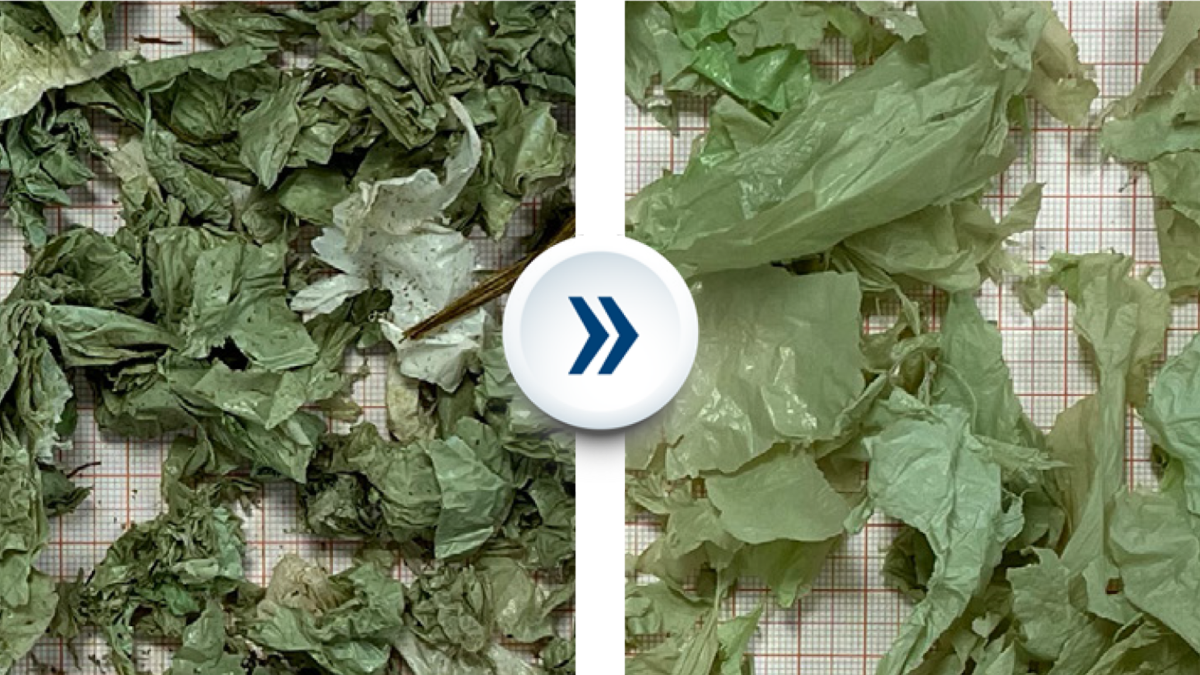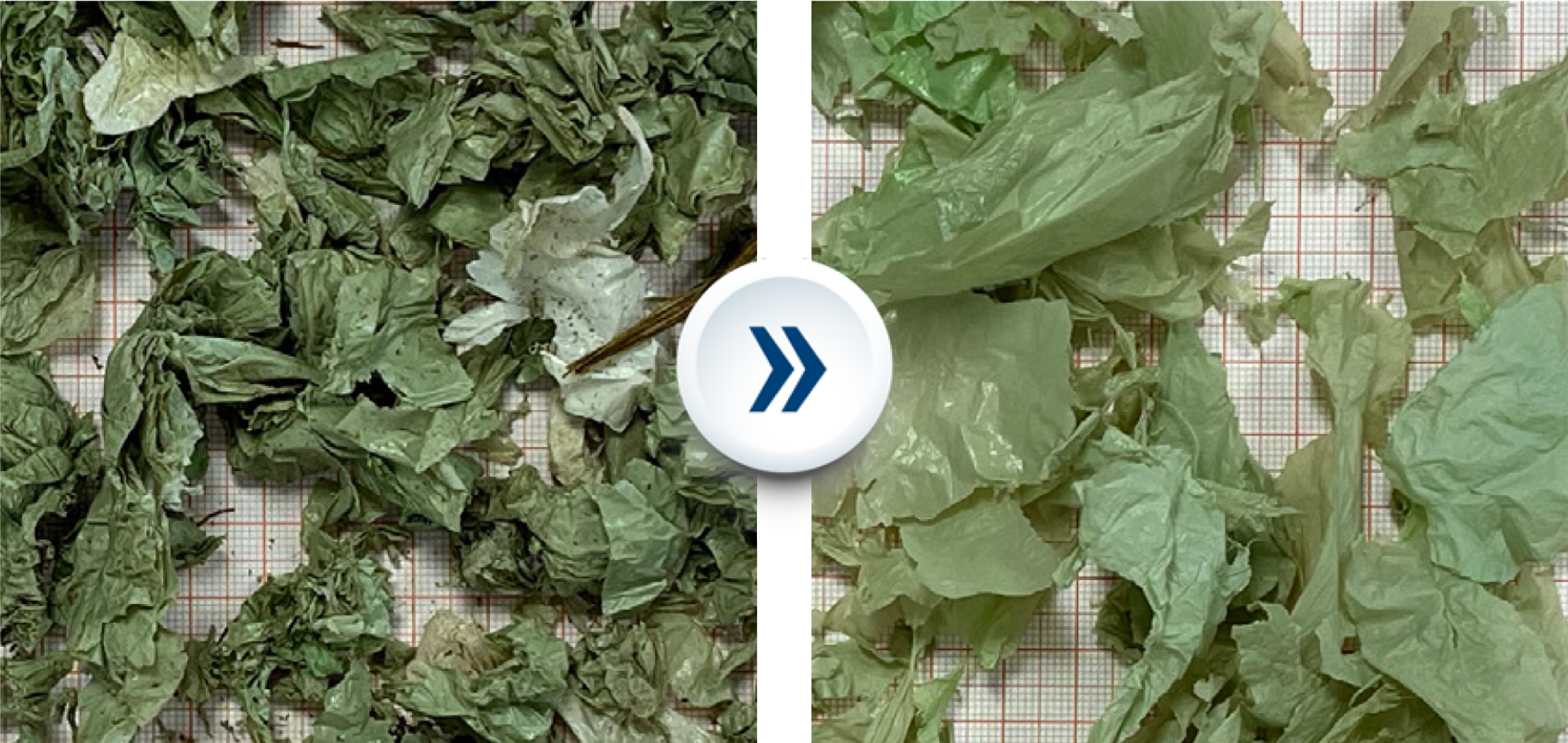 Fremdstoffe wie Papier werden zerfasert und zusammen mit Schmutz sowie einem Großteil der Feuchtigkeit effektiv ausgetragen.