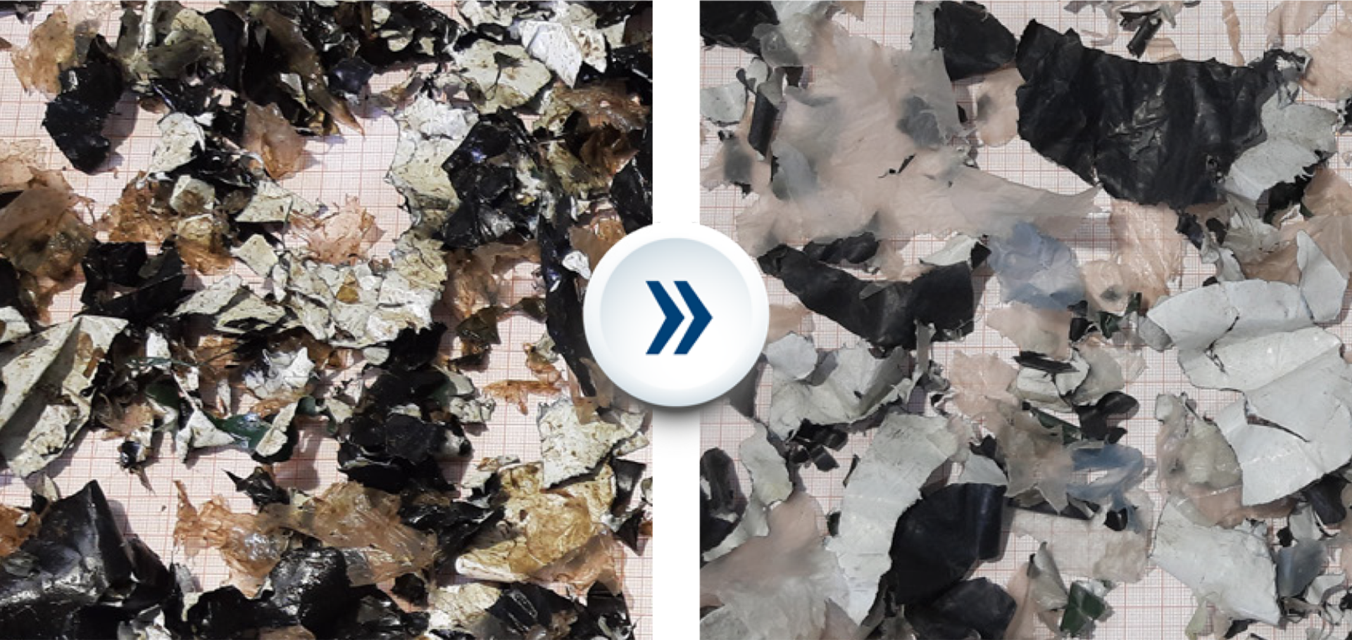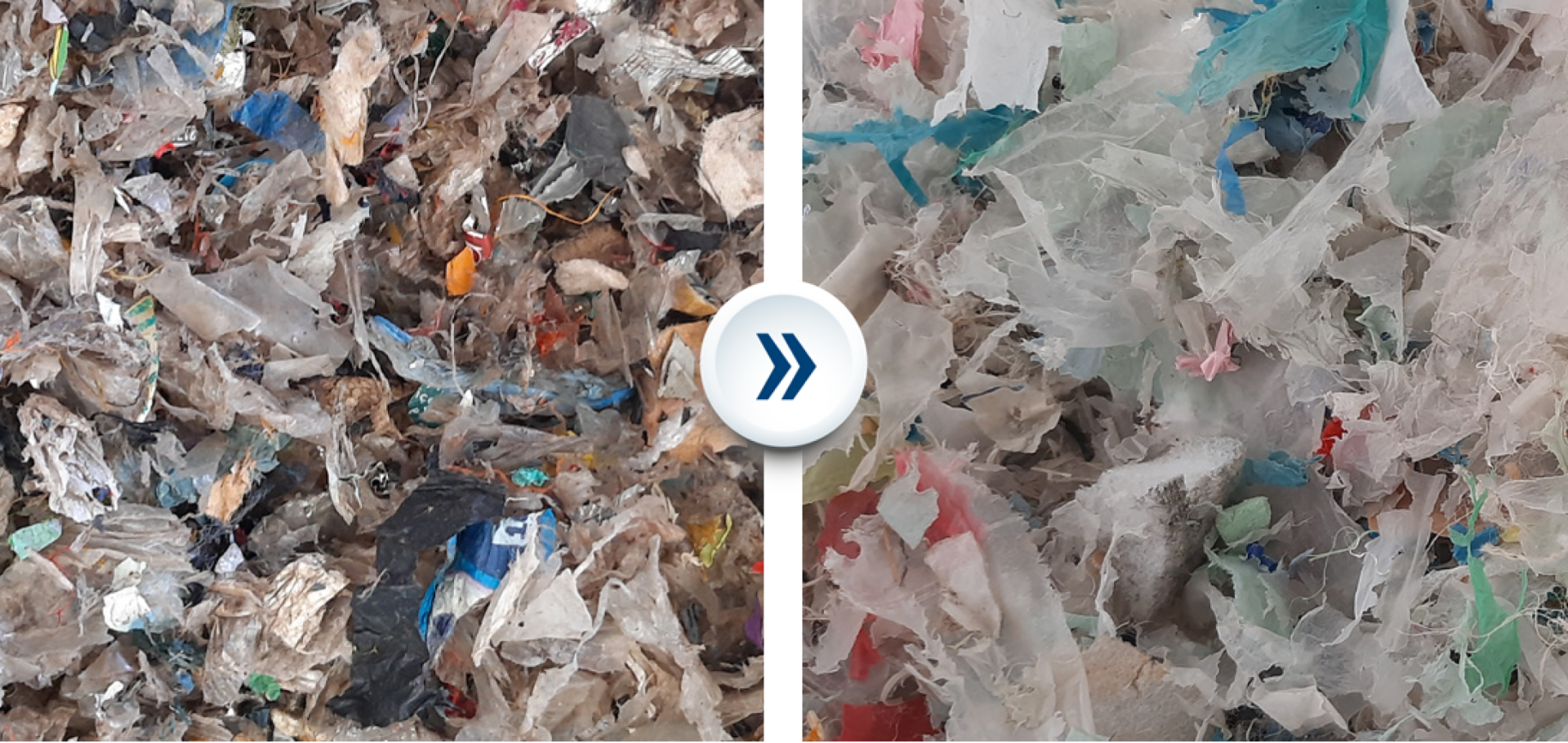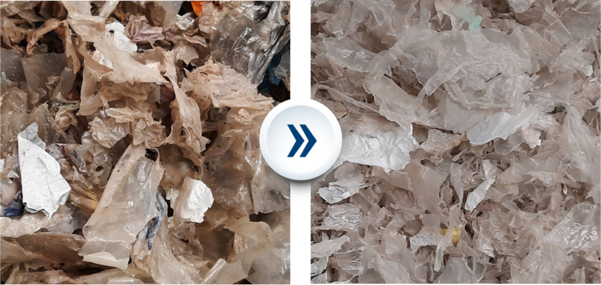 Mit Fokus auf die steigenden Qualitätsanforderungen des Recyclingmarktes und im engen Austausch mit einem Experten-Netzwerk bieten wir unseren Kunden eine praxisnahe Lösung, die viele Vorteil bietet. Sie erhalten vier Abfall-Fraktionen die von dem verschmutzten Eingangsmaterial abgeschieden werden.