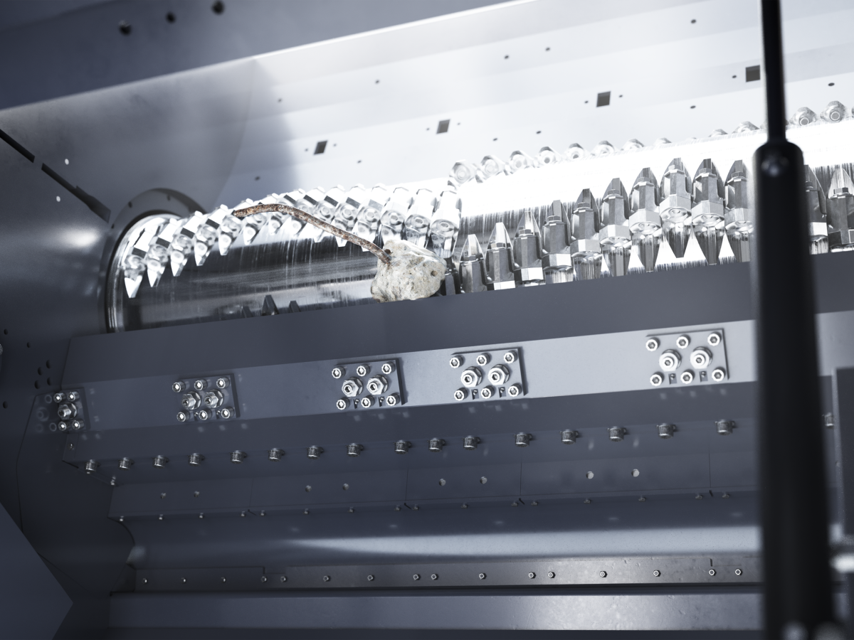 Automatische Störstofferkennung ermöglicht die konsequente Vermeidung von Maschinenschäden. Praktische, schnelle Störstoffentnahme erfolgt über die hydraulische Bodenklappe. Hierdurch werden konsequent Stillstandzeiten minimiert.