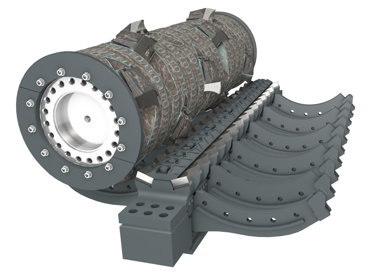 Das Maschinengehäuse besteht aus einer dickwandigen, verrippten Konstruktion mit optimaler funktioneller Maschinengeometrie. Sie bildet die Basis für einen leistungsfähigen und störungsfreien Betrieb. Damit garantieren wir Ihnen maximale und gleichbleibende Verfügbarkeit über viele Jahre – und das auf höchstem Niveau. Zwei Vollstahl-Rotoren erzielen mit ihren großen Schwungmassen einen ruhigen Maschinenlauf und eine hohe Durchschlagskraft. Das Zusammenspiel der beiden Rotoren mit dem gemeinsamen Gegenmesser und der Siebstege führt zu einem sehr gut separierfähigen und homogenen Output. Zwei große hydraulische Wartungstüren erleichtern den Wechsel der Verschleißteile und ermöglichen das Ausschleusen von Störstoffen, auch bei komplett gefülltem Einfülltrichter.