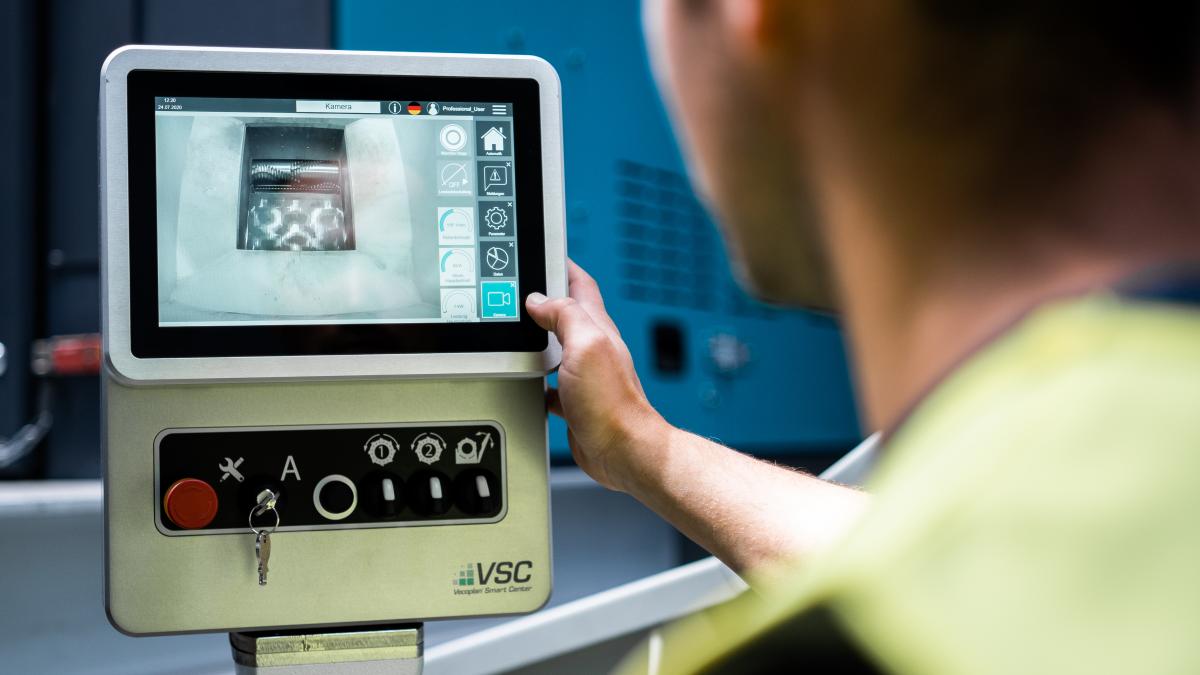 Durch das VSC.control ist es möglich, das Kamerabild aus dem Inneren der Maschine darzustellen - in Kombination mit dem VSC.connect auch bequem von zuhause.