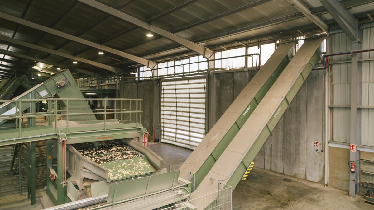 Zum Einsatz kamen unter anderem ein Trommelhacker des Typs VTH 260, acht Kratzkettenförderer, vier Vibrorinnen, eine Schwingsichtersiebmaschine des Typs VSS 6000 sowie weitere Förder- und Separiertechnik