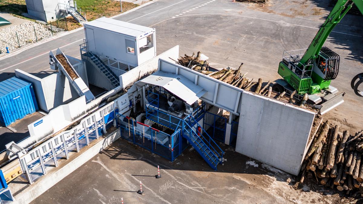 Eingesetzt wurden ein Biomassehacker VTH 600 für die Zerkleinerung von Nadelholz-Stämmen und Kappscheiben, ein Zerkleinerer des Typs VAZ 1100 für die Zerkleinerung der Überlängen sowie umfassend Förder- und Lagertechnik-Anlage