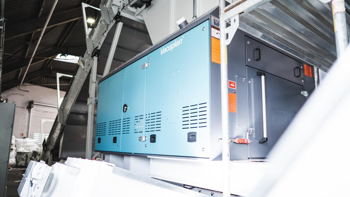 Die Anlage wird über zwei Ebenen aufgestellt. Die Beschickung und Zerkleinerung erfolgt ebenerdig, während das Separieren und Lagern im zweiten Stock stattfinden. Hierfür lieferte Vecoplan einen V-ECO 1300 sowie die entsprechende Förder-, Lager- und Dosiertechnik.