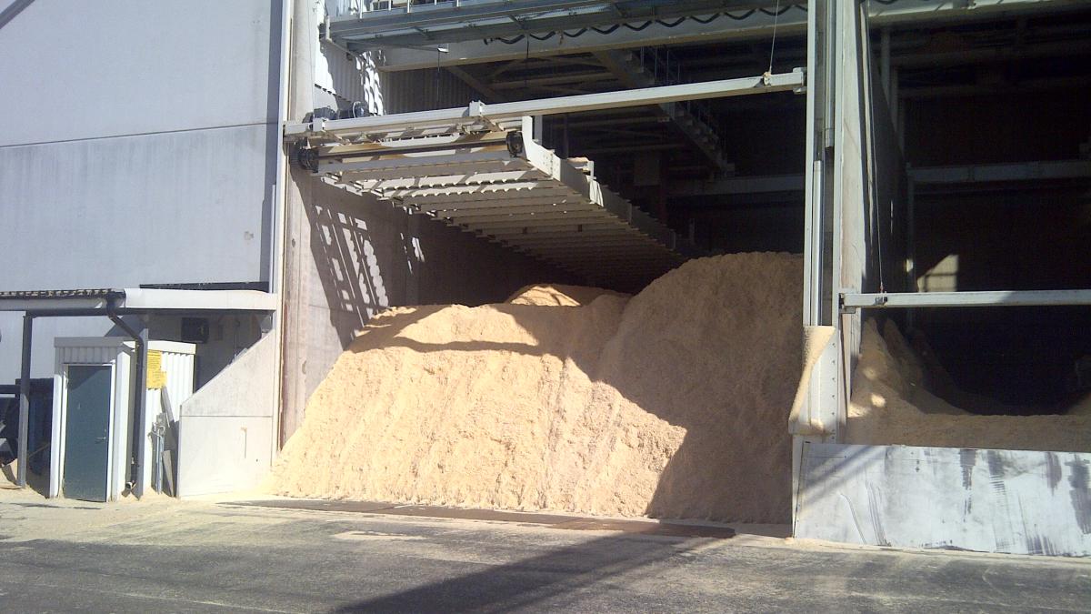 Bisher wurde das Sägemehl aus dem bestehenden Sägewerk auf ein einfaches Haufwerk gefördert. An dieser Stelle sollte eine vollautomatische Lagerung mit Austragung entstehen, um das Rohmaterial nach einer Siebung zum neuen Bandtrockner für die Pelletproduktion fördern zu können.