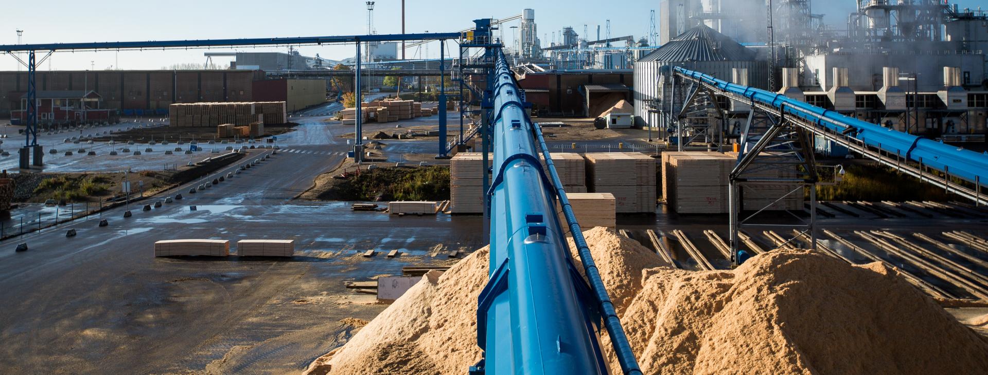 Mit dem Fördersystem von Vecoplan wurde der komplette Transportweg der Rinde und der Späne kurzerhand in luftige Höhen über die Gebäude und Straßen Södras verlegt. In Vecoplan hat man einen Partner gefunden, der hält was er verspricht! Die Anlage läuft ebenso wie die Pelletanlage seit Jahren problemlos.