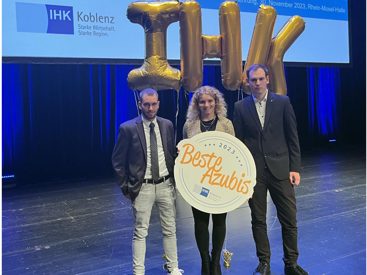 With the results of their final exams, Fabienne Messer (Industrial business management assistant), Eric Steinhauer ( Industrial mechanic) and Lars Röhrig (Mechatronics) are among the best apprentices of the IHK Koblenz in 2023.