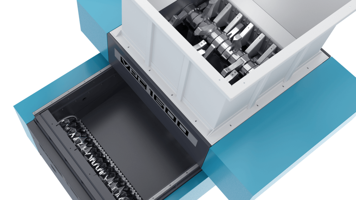 The filler port of the new pre-shredder measures 1,605 x 1,605 millimetres and the drive power is 2 x 9.2 kilowatts. Sixteen counter-crushers have been integrated into the machine and it also has two independently running rotors, each with a speed of ten revolutions per minute. “If an over-torque occurs briefly during operation, the two rotors can reverse independently of each other. This ensures an efficient and continuous process flow,” concludes Rosenkranz.