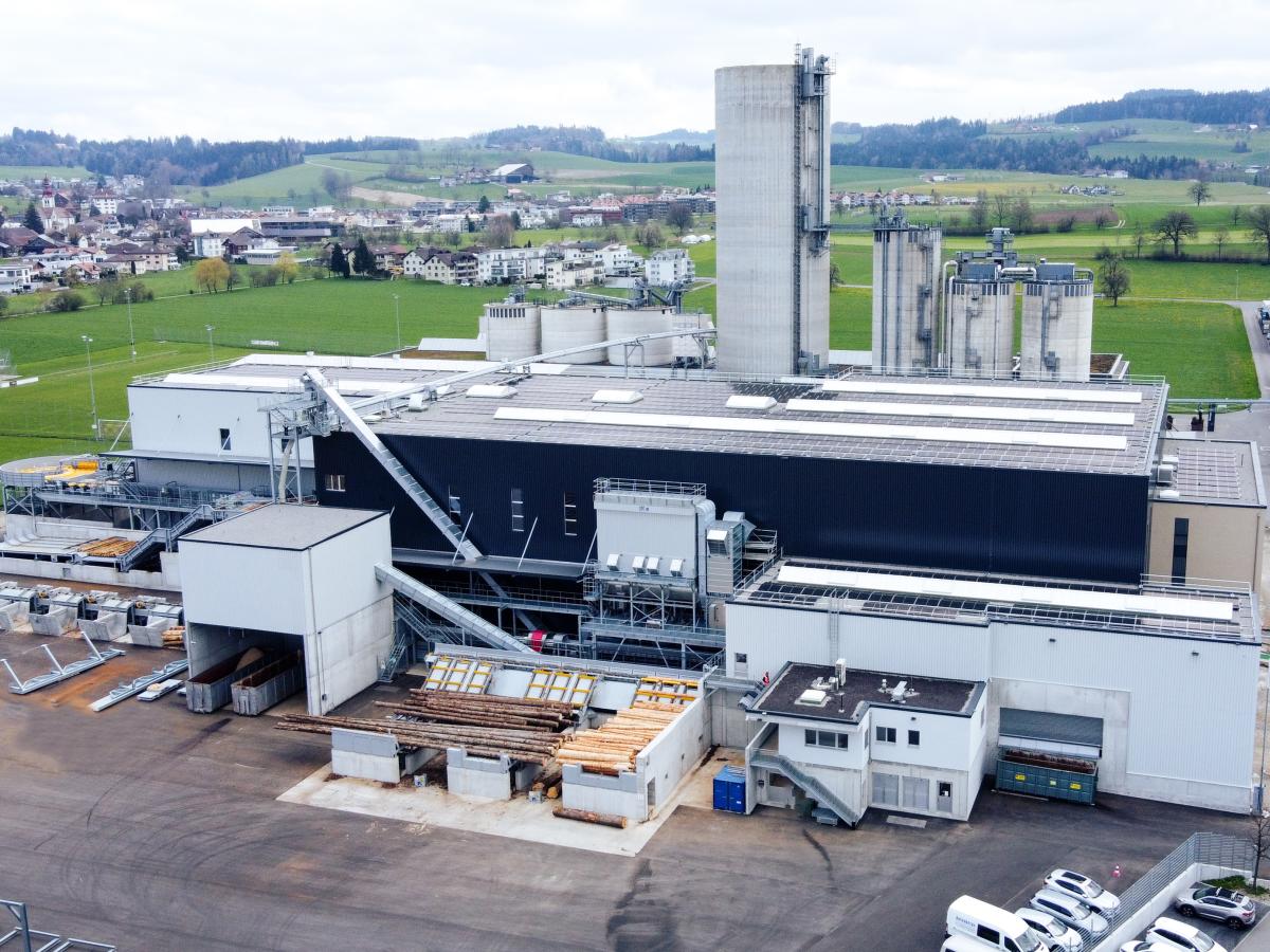 The production of shuttering panels generates a lot of wood residues such as chips, sawdust, offcuts and bark – and to ensure that nothing is wasted, 2005 saw Tschopp build its own pellet production facility, which the company has continuously expanded. Today, Tschopp produces up to 120,000 metric tons of pellets every year. The site has also had its own wood-fired power plant since 2014. “The plant provides the entire heat for drying the sawn timber and the pellets,” says the sawmill manager. “We use the residual heat to produce environmentally friendly electricity.” The facility generates around 9.4 million kilowatts per year. Tschopp Holzindustrie thus utilises one hundred percent of the raw material at the site. Since more wood will be processed in the new sawmill, more energy will also be needed for drying it, but there is enough space on the property for another power plant.