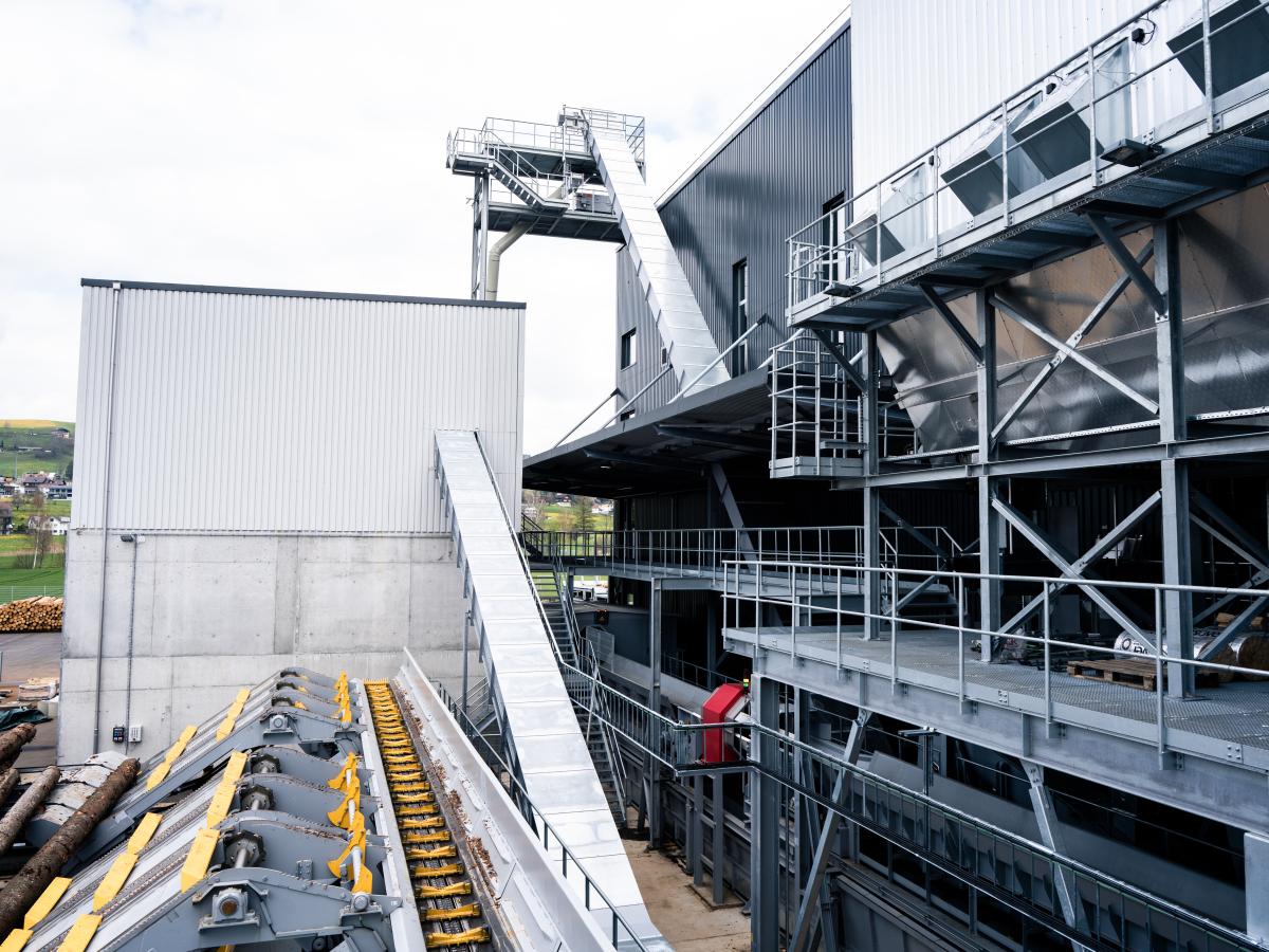 The new building of Tschopp AG: Vecoplan supplied the equipment for the disposal and processing of the waste wood from the sawmill line.