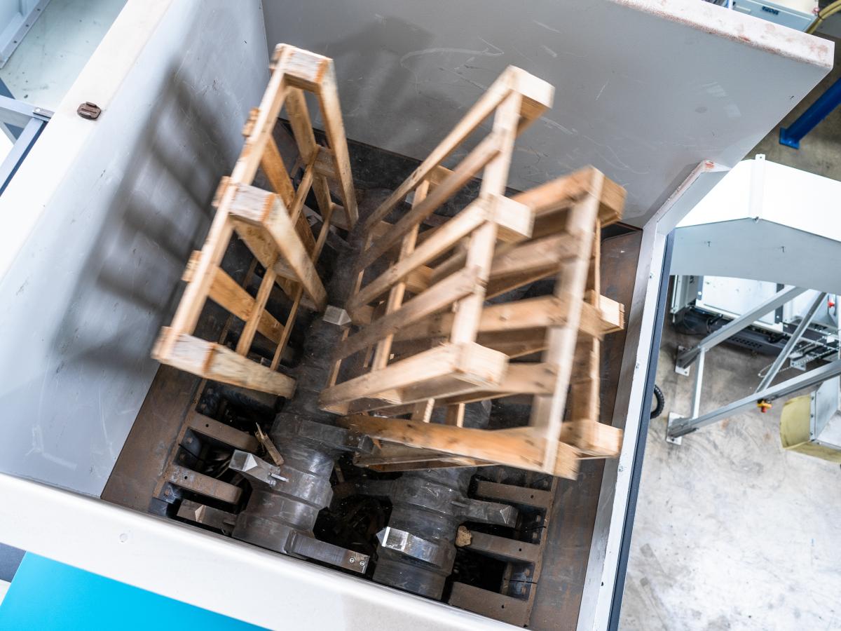 “The inquiries came mainly from the USA,” reports Dirk Müller, Head of Business Unit Wood | Biomass at Vecoplan. “American material & distribution centres and DIY supermarkets often use disposable pallets.” These bulky wooden components must be reliably shredded in continuous operation, a process that’s usually only possible with large shredders – and they have a large footprint. In addition, if components such as pallets are fed directly to the shredder, the throughput rate is relatively low due to their light and airy construction – and shredding them takes time.