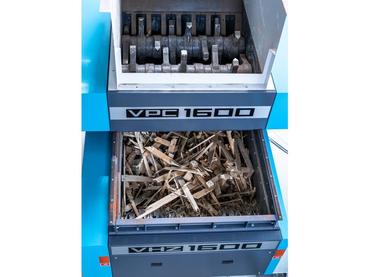 The new Vecoplan VPC 1600 pallet crusher in combination with the VHZ 1600 forms a powerful unit for crushing & shredding bulky wooden items.
