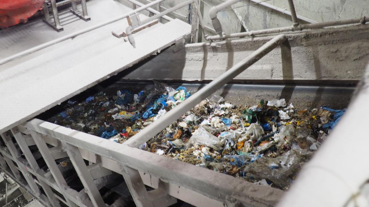 Trucks deliver up to 400 tonnes of unsorted and untreated waste to the plant every day.