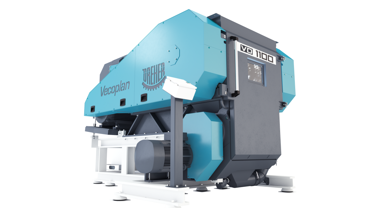 2 in 1 – Shredder Granulator Combination for two stage shreddingThe intelligent inhouse solution of the VDZ is a design jointly developed based cutting mill specialist Heinrich Dreher GmbH & Co. KG from Aachen and Vecoplan AG. This combines the expertise in cutting and shredding of two German plant and machine manufacturers in one machine housing. The machine crushes the input material from a lump in two stages to granulat in the desired output grain size for direct reuse in the production flow.