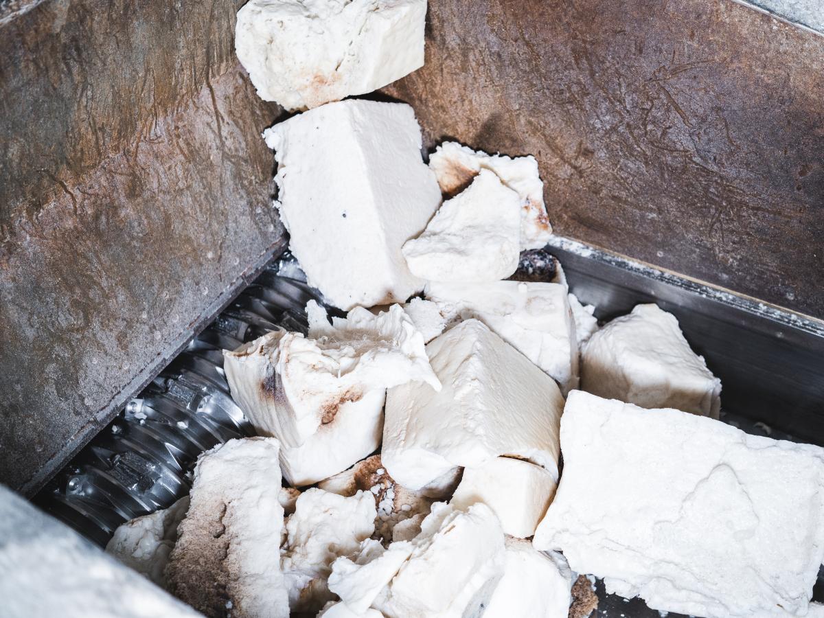 A supplier of thermoplastics recycles production waste in-house. In close cooperation with the customer, Vecoplan designs a single-shaft shredder in a particularly robust version that handles a direct and unsorted feed of the material almost regardless of size and mass.