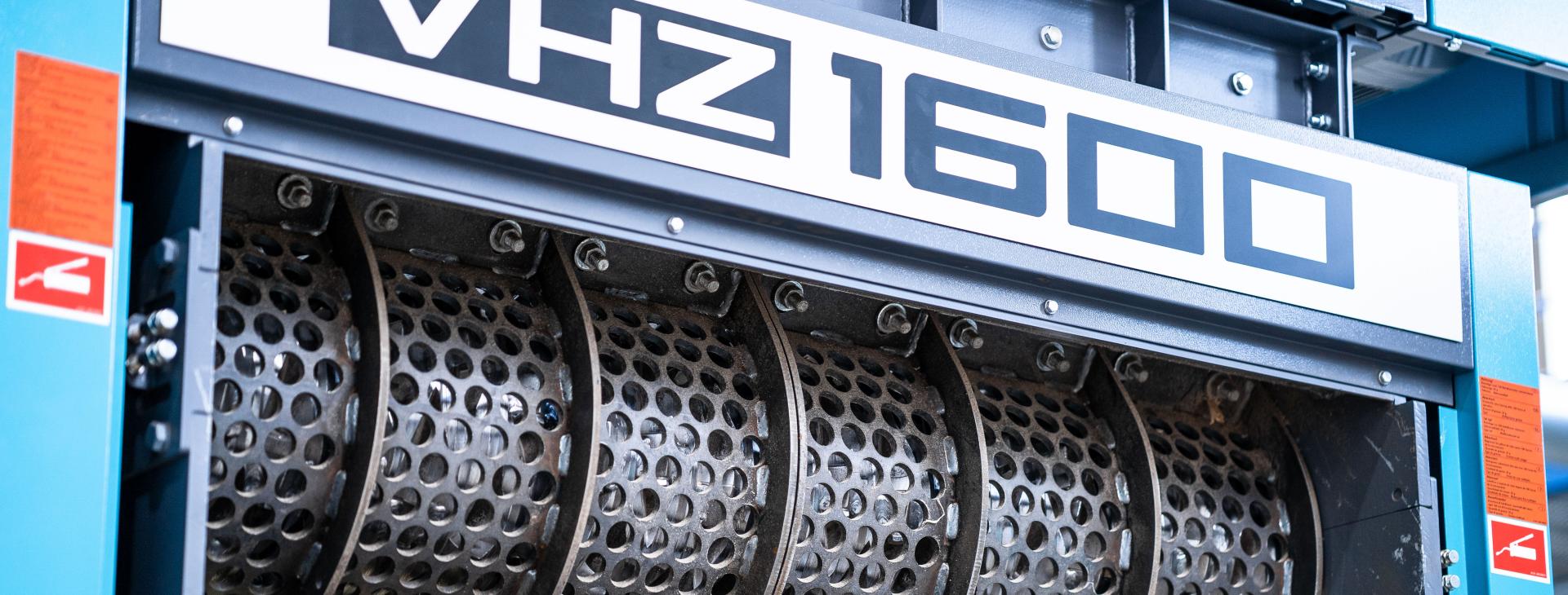 Energy-efficient shredder for a wide variety of wood wasteDo you want to reliably process chipboard, hardwood and solid wood waste, bark, softwood and even whole pallets into wood chips and briquette-ready material? Our VHZ series of compact and robust single-shaft shredders has been specifically designed to master these tasks. You’ll benefit from low operating costs thanks to energy-efficient drive technology, and in most usage scenarios, you can feed the collected materials directly to the machine without the need for additional feeding systems. Since the rotor turns particularly slowly, it makes little noise or dust during vertical feeding.
