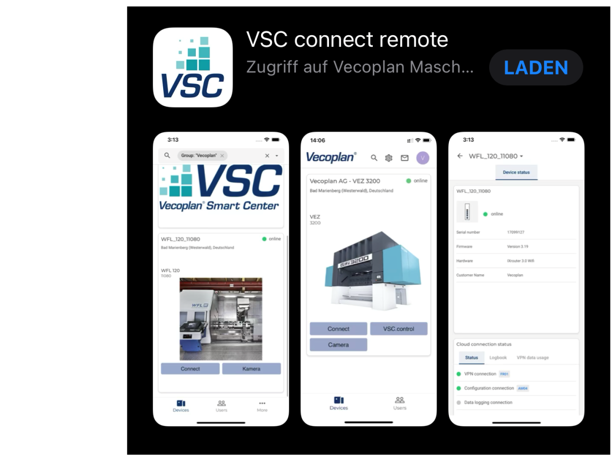 With the VSC.portal platform, you connect your machines to the cloud and thus benefit from many advantages