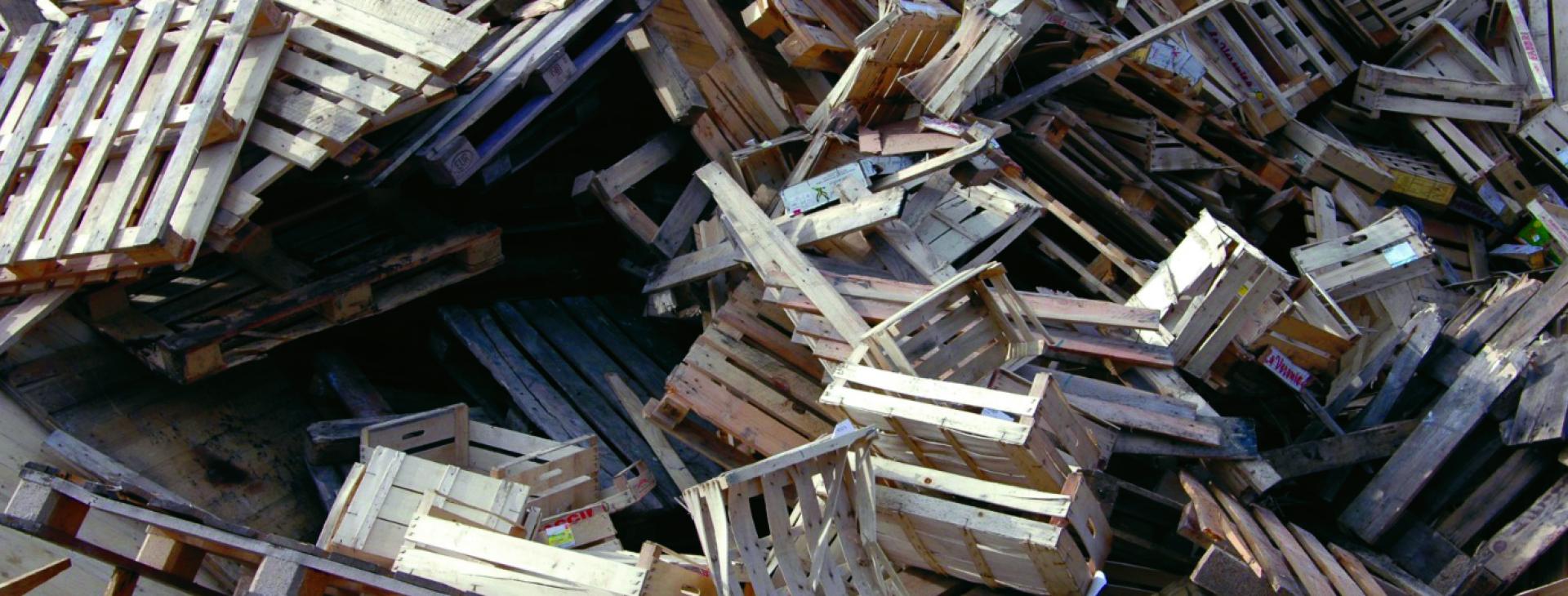 Large-volume components made of wood such as pallets, but also boxes and cable drumsDisposable pallets, wooden crates and cable drums that can no longer be used can be appropriately prepared for more processing into fuel for energy or wood briquettes.